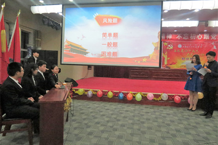 本次競賽分為必答題、搶答題、風(fēng)險題三個環(huán)節(jié),題庫準(zhǔn)備了1000道考題,內(nèi)容涵蓋了十九大、新黨章黨規(guī)黨紀(jì)、習(xí)近平系列重要講話等相關(guān)知識點(diǎn)。各代表隊參賽選手使出渾身解數(shù),冷靜作答,密切配合,氣氛活躍而緊張,上演了一場精彩紛呈的黨建文化盛宴。競賽現(xiàn)場精彩紛呈,高潮迭起,選手們既有毫不猶豫的快速回答,也有充分商討后的沉著應(yīng)答,展現(xiàn)了他們豐富的知識積累和敏捷的思辨能力。在工作人員統(tǒng)計分?jǐn)?shù)的間隙,主持人與現(xiàn)場學(xué)生進(jìn)行了互動,把難度較大的風(fēng)險題拋給大家搶答,有7位同學(xué)獲得了現(xiàn)場搶答獎勵——《習(xí)近平系列重要講話讀本》。