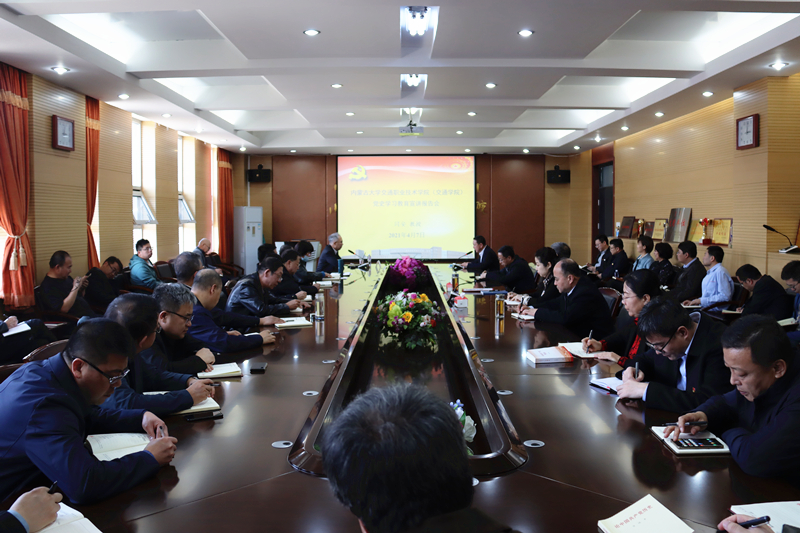 按照開(kāi)展黨史學(xué)習(xí)教育的有關(guān)要求和學(xué)院黨史學(xué)習(xí)教育及實(shí)踐活動(dòng)工作總體安排,2021年4月7日下午,我院邀請(qǐng)自治區(qū)黨委黨史學(xué)習(xí)教育第十五巡回指導(dǎo)組成員、自治區(qū)黨史學(xué)習(xí)教育宣講團(tuán)成員、內(nèi)蒙古工業(yè)大學(xué)馬克思主義學(xué)院教授閆安來(lái)院作黨史學(xué)習(xí)教育專(zhuān)題宣講。學(xué)院領(lǐng)導(dǎo)孫智憑、白托婭、董平、武鈞,院黨史學(xué)習(xí)教育領(lǐng)導(dǎo)小組成員、各工作組組長(zhǎng)、副組長(zhǎng),副處級(jí)以上干部,基層黨支部書(shū)記參加。學(xué)院黨史學(xué)習(xí)教育領(lǐng)導(dǎo)小組辦公室副主任、黨委宣傳部部長(zhǎng)高飛主持。