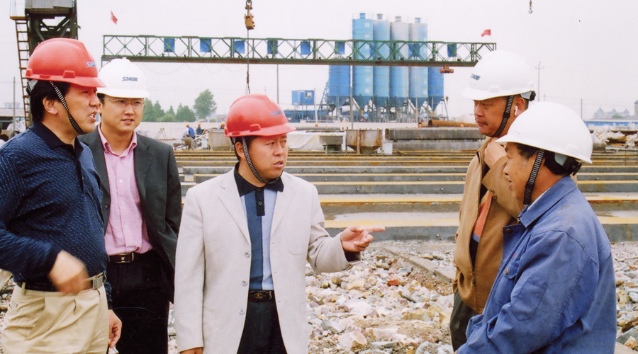 圖為學(xué)院畢業(yè)生韋世國副局長(左一)、學(xué)院畢業(yè)生九泰公司 總經(jīng)理關(guān)和平(中)在施工現(xiàn)場