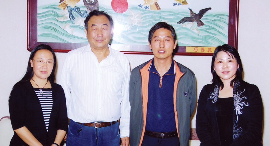 中國路橋集團公路一局張冬菊副處長(80年代畢業(yè)生、左一)、郁苗福副總工程師(60年代畢業(yè)生、左二)、弓天云公路一局局長(80年代畢業(yè)生、左三)、張鳳玲高級工程師(80年代畢業(yè)生、左四)、兩代畢業(yè)生祝福母校五十華誕
