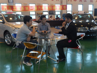“銷售顧問”與“顧客”洽談 |