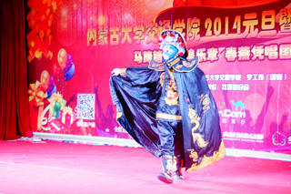 舞蹈《萬馬奔騰》拉開了晚會(huì)序幕。晚會(huì)分為三個(gè)篇章,以歌曲《紅紅的日子》、舞蹈《青花瓷》、小品《一條短信》、舞臺(tái)表演《變臉》表達(dá)第一篇章“辭舊攀高峰,馬年鑄輝煌”的風(fēng)韻;以歌曲《我的故鄉(xiāng)》、小品《女人的N次方》、歌曲串燒《飛得更高+明天更美好》、朗誦《青蔥歲月》、舞蹈《落花情》表現(xiàn)第二篇章“承斑斕夢(mèng)想,綻青春華采”的活力;以舞蹈《最后的A—one》、小品《白蛇傳》、手語表演《我們?cè)谝黄稹?、舞臺(tái)表演《魔術(shù)》展現(xiàn)第三篇章“青春無限量,夢(mèng)想無極限”的激情。眾多優(yōu)秀節(jié)目既體現(xiàn)了濃濃的新年喜悅,又表達(dá)了即將畢業(yè)的同學(xué)對(duì)母校的不舍,兩個(gè)多小時(shí)的晚會(huì)始終洋溢著青春澎湃、熱烈祥和的氛圍。晚會(huì)中還穿插了抽獎(jiǎng)活動(dòng),讓晚會(huì)高潮迭起,精彩紛呈。
