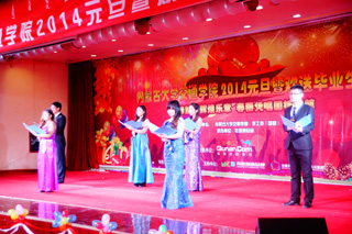 白托婭副書記致辭,她說,回首即將過去的2013年,學(xué)院各項(xiàng)建設(shè)事業(yè)取得了長足的發(fā)展,特別令人鼓舞和振奮的是,我們集全院之力勝利召開了學(xué)院第一次黨員大會(huì),確立了今后一個(gè)時(shí)期學(xué)院的發(fā)展目標(biāo)和發(fā)展思路。無論是過去的成績(jī)還是未來的目標(biāo),都離不開全體教職員工和廣大同學(xué)們的努力,學(xué)院所有的成績(jī)都凝聚著大家的智慧和汗水。喜迎新年之際,她代表學(xué)院領(lǐng)導(dǎo)班子,向全院師生員工致以衷心的感謝和誠摯的問候,祝愿大家在新的一年里,學(xué)習(xí)進(jìn)步、工作順利、闔家幸福、萬事如意。同時(shí),她還為即將畢業(yè)的2014屆學(xué)子們送上深情的祝福,希望同學(xué)們?cè)谖磥淼娜松猛局校兄煌▽W(xué)院50多年形成的優(yōu)良傳統(tǒng),志存四方,腳踏實(shí)地,自信拼搏,勤奮進(jìn)取,開創(chuàng)出美好燦爛的明天。