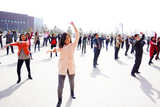 為增強(qiáng)我院廣大教職工的身體素質(zhì),培養(yǎng)健康的運(yùn)動(dòng)習(xí)慣,保持充沛的工作精力,形成良好的精神狀態(tài), 3月31日上午,學(xué)院組織教職工50余人在交通樓樓前廣場教做第十套廣播體操。