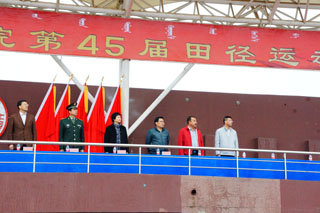 內(nèi)蒙古大學副校長鐵勇,內(nèi)蒙古大學黨委委員、交通學院黨委書記孫智憑,內(nèi)蒙古大學體育教學部主任于志海、黨政辦公室副主任方麗英、團委副書記海光、保衛(wèi)處副處長金山,中國人民解放軍陸軍預備役步兵第三十師參謀長謝志勇、通訊科科長孫英俊,交通學院常務副院長董平,副院長孫恒,副院長武鈞,各系黨總支書記出席開幕式并在主席臺就坐。我院師生2300余人參加了開幕式。開幕式由黨政辦公室主任胡利春主持。