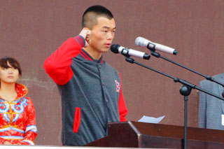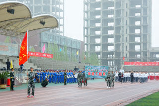 一場春夜喜雨之后,伴隨著清新的空氣,在雄壯高昂的運動員進行曲中,各系學生和教工方隊,機關(guān)、教輔單位職工方隊,步伐矯健,口號響亮,依次向主席臺走來,接受檢閱。隆重的入場式后,大會舉行了莊嚴的升國旗儀式,在嘹亮的國歌聲中,五星紅旗冉冉升起。