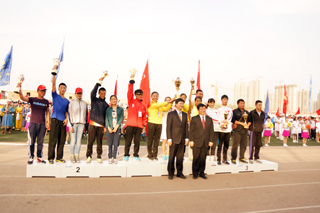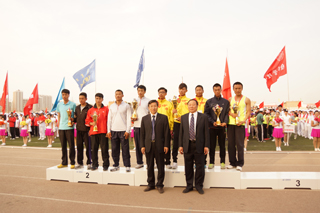 與會領(lǐng)導(dǎo)為獲得學(xué)生男子團體前六名的單位頒獎 |