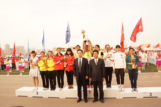 與會領(lǐng)導(dǎo)為獲得學(xué)生女子團體前六名的單位頒獎 |