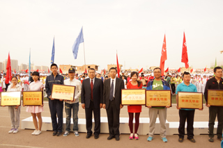與會領(lǐng)導(dǎo)為獲得教工團體前三名的單位頒獎 |