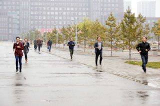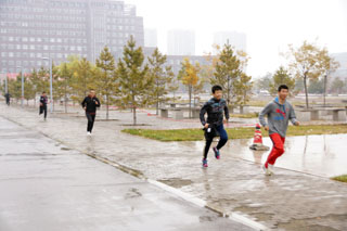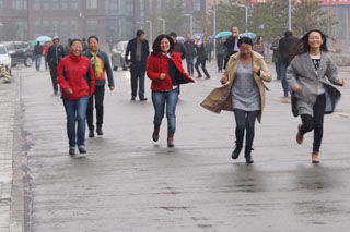 學院院長柴金義(左一)宣布比賽開始并鳴發(fā)令槍 |