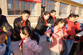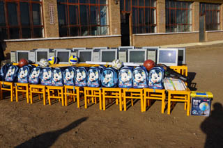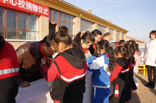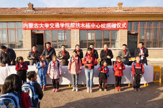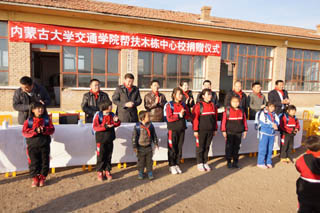 儀式上,我院向鄂爾棟鎮(zhèn)中心校及學生捐贈了電腦30臺、學生桌椅30套、書包及學習用品25套、體育用品、教學儀器、課外讀物,總價值達7萬多元。其中書包、體育用品、教學儀器、課外讀物的購買款項是由我院工會組織全院教工捐贈的,包括學院圖管會十名學生干部捐贈的100元。