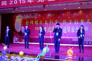 孫智憑書記為晚會致辭。他說,看到又一批大學生即將畢業(yè)步入社會,感到十分的高興和欣慰,新的一年即將到來,預祝畢業(yè)生前程似錦,祝福大家在新的一年里萬事如意。希望畢業(yè)生日后步入工作崗位可以努力工作,孝敬父母,承擔家庭責任,服務社會。他寄語畢業(yè)生要“德藝雙馨、身心雙健”。最后,他要求同學們要以“路為紙,地成冊;行作筆,心當墨”踏踏實實走好每一步,用實際行動來丈量天下,鑄就輝煌。