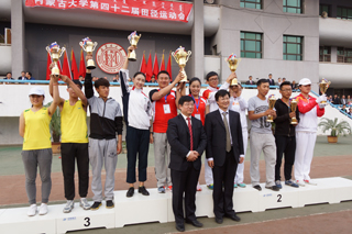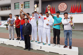 與會(huì)領(lǐng)導(dǎo)為獲得學(xué)生男子團(tuán)體前六名的單位頒獎(jiǎng) |