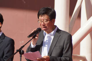 學(xué)院常務(wù)副院長董平致運(yùn)動會開幕詞。首先,他代表學(xué)院對第46屆田徑運(yùn)動會的開幕表示祝賀,對到場的所有領(lǐng)導(dǎo)嘉賓表示熱烈的歡迎,對為本次運(yùn)動會籌備工作付出辛勤勞動的老師、同學(xué)們表示誠摯的謝意。他說,從上屆運(yùn)動會到這屆運(yùn)動會,學(xué)院在體育教學(xué)工作方面有了新的發(fā)展,高等學(xué)校體育工作基本標(biāo)準(zhǔn)得到貫徹落實(shí)。突破自我、超越自我的體育精神有了新的傳承與發(fā)揚(yáng),群眾性體育活動有了新的進(jìn)步。伴隨著觀念的更新,越來越多的老師和同學(xué)參加到了各種各樣的活動中。這些豐富的活動,為提高校園文化建設(shè)和大學(xué)精神的弘揚(yáng),堅(jiān)持全面貫徹教育方針,大力推進(jìn)素質(zhì)教育,特別是提高學(xué)生的身體素質(zhì)起到了積極作用。此次運(yùn)動會將是對體育教學(xué)工作的集中檢閱,也是群眾性體育活動和校園文化建設(shè)的集中展示。交通學(xué)院是一個(gè)有著光榮歷史和優(yōu)良傳統(tǒng)的院校,希望同學(xué)們抓住在校期間的每一個(gè)機(jī)會,不斷提升自己的能力,使自己成為新時(shí)代的優(yōu)秀學(xué)子和合格人才,希望在本屆運(yùn)動會上秉承“更高、更快、更強(qiáng)”的體育精神,賽出成績、賽出風(fēng)格、賽出水平,賽出交通學(xué)院的風(fēng)采。最后,他祝愿本次運(yùn)動會圓滿成功!