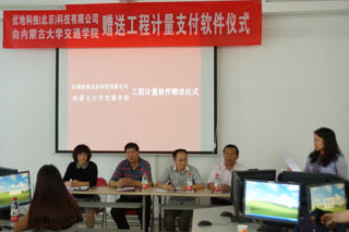 6月3日下午,經(jīng)過一段時間的洽談和籌備,億通優(yōu)地北京科技有限公司和內(nèi)蒙古大學(xué)交通學(xué)院達(dá)成校企合作協(xié)議,億通優(yōu)地北京科技有限公司向我院師生贈送優(yōu)地的正版軟件(內(nèi)蒙古大學(xué)交通學(xué)院學(xué)生每人一個正式賬戶)。贈送儀式在工程管理系工程造價實驗室舉行。