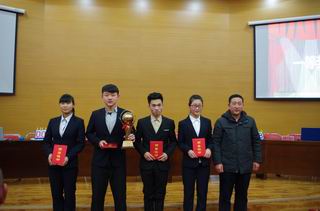 圖為蘇赫科長(zhǎng)、蘭波副科長(zhǎng)為汽車工程系代表隊(duì)頒獎(jiǎng) |
