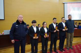 圖左起依次為保衛(wèi)處(南區(qū))蘇赫科長(zhǎng)、后勤保衛(wèi)處丁永欽處長(zhǎng)、工程管理系黨總支鐘懷軍書記、學(xué)工處高飛處長(zhǎng)、保衛(wèi)科蘭波副科長(zhǎng)、工程管理系學(xué)工辦閆琴主任 |