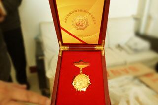 圖為中央軍委頒發(fā)的“紀(jì)念中國人民抗日戰(zhàn)爭暨世界人民反法西斯戰(zhàn)爭勝利70周年”金質(zhì)紀(jì)念章 |
