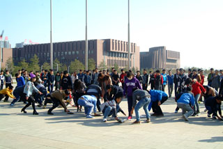 2014年11月4日中午,溫暖的陽光照射在內(nèi)蒙古大學(xué)南區(qū)廣場,交通學(xué)院學(xué)工處(團(tuán)委)學(xué)生聯(lián)合會(huì)的心理健康教育部正在組織學(xué)生參與一場愉悅身心的團(tuán)體游戲項(xiàng)目比拼?!凹佑停 薄凹佑?!”吶喊助威聲不絕于耳。
