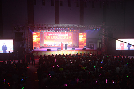 晚會(huì)現(xiàn)場(chǎng)氣氛熱烈、節(jié)目形式活潑新穎、高潮迭起。贏得領(lǐng)導(dǎo)、教師和校友的一致好評(píng)。