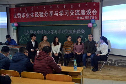 為進(jìn)一步加強(qiáng)學(xué)風(fēng)建設(shè),增強(qiáng)同學(xué)們之間的溝通,幫助大一新生更好地明確學(xué)習(xí)目標(biāo)與人生理想,12月6日晚運(yùn)輸工程系在J111舉辦了“優(yōu)秀畢業(yè)生經(jīng)驗(yàn)分享與學(xué)習(xí)交流座談會(huì)”。五位運(yùn)輸工程系2014級(jí)與2015級(jí)的優(yōu)秀學(xué)生分別從“經(jīng)驗(yàn)分享、學(xué)習(xí)交流、暢想未來(lái)”三個(gè)方面分享了自己大學(xué)生活的經(jīng)驗(yàn)與體會(huì)。