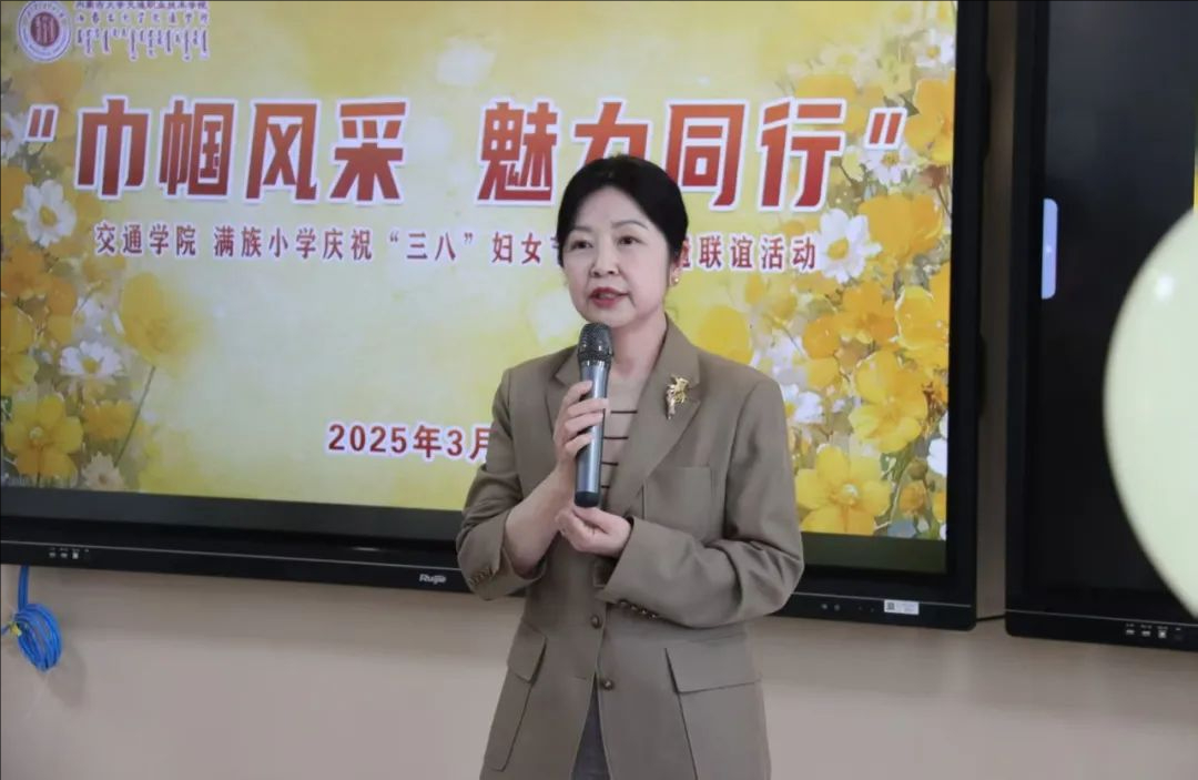 新城區(qū)滿族小學黨總支副書記、校長陳雁萍向現(xiàn)場女教職工致以節(jié)日的問候。