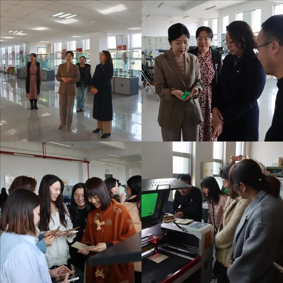 在等待扇子漆料干燥的期間,女教職工們參觀了院史展廳,通過院史講解與實物展陳,了解學院在教育領域近七十載的奮斗歷程;走進3D打印與激光雕刻實驗室,近距離觀摩模型快速成型技術(shù)。