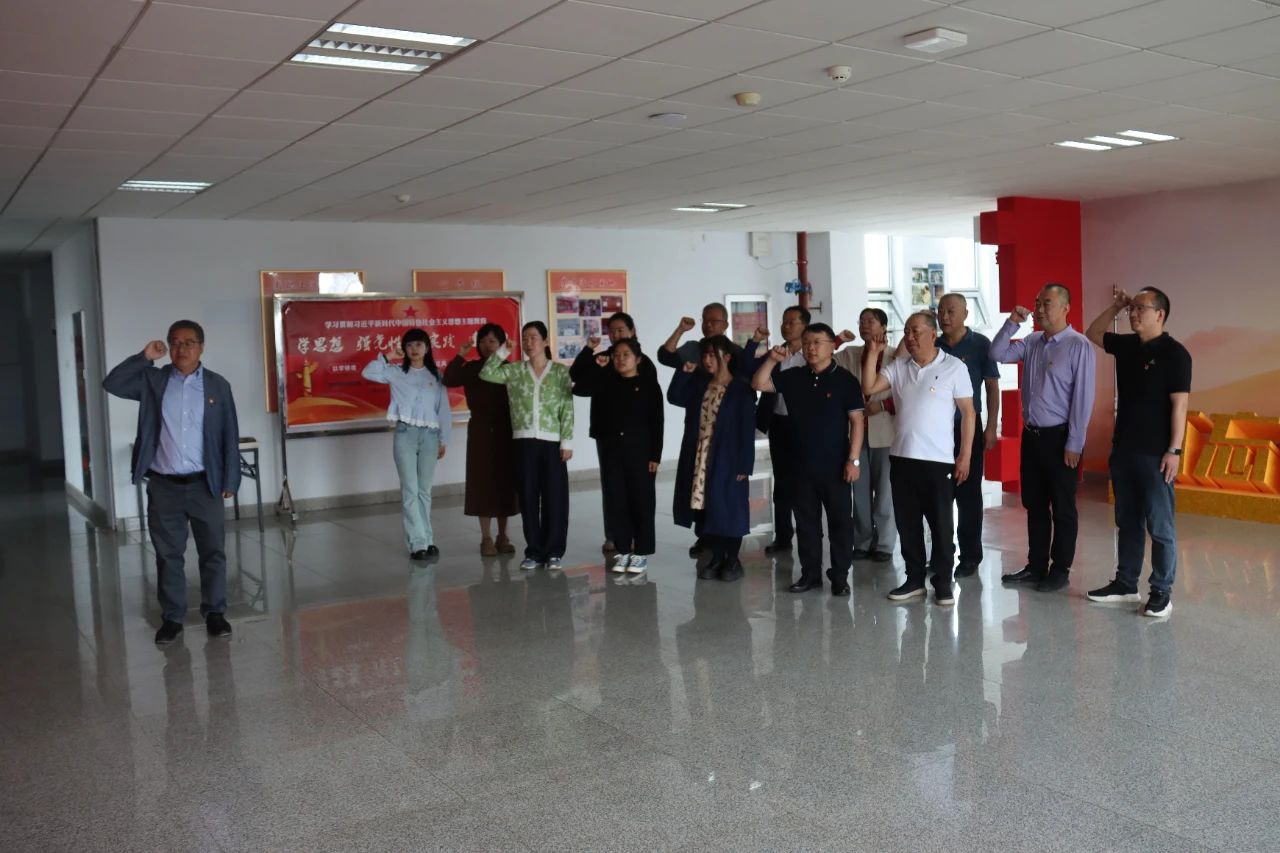 活動(dòng)伊始,全體黨員共同參觀了學(xué)院黨建一體化長(zhǎng)廊。通過(guò)圖文展板和實(shí)物陳列,大家系統(tǒng)回顧了學(xué)院黨委近70年的奮斗歷程,深入了解學(xué)院黨建工作的創(chuàng)新實(shí)踐成果。面對(duì)鮮紅的黨旗,全體黨員莊嚴(yán)舉起右拳,在領(lǐng)誓人任立新同志的帶領(lǐng)下重溫入黨誓詞,鏗鏘誓言回蕩在長(zhǎng)廊中,進(jìn)一步堅(jiān)定了理想信念與使命擔(dān)當(dāng)。