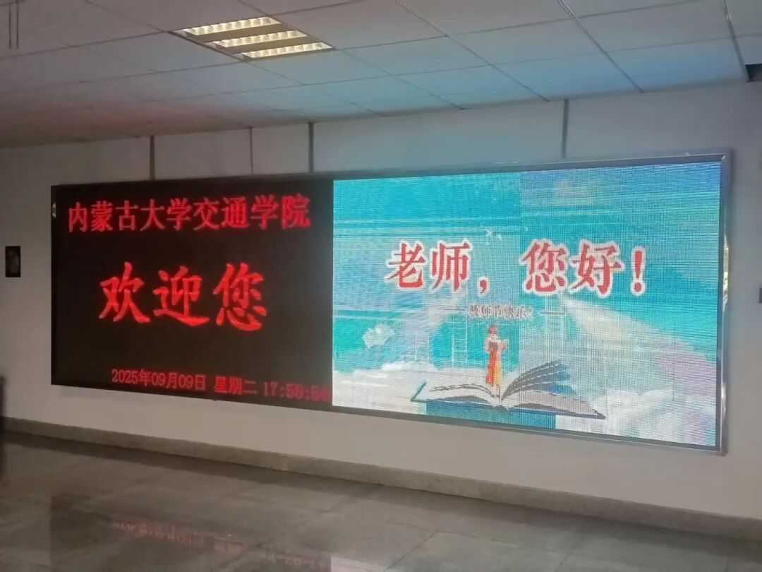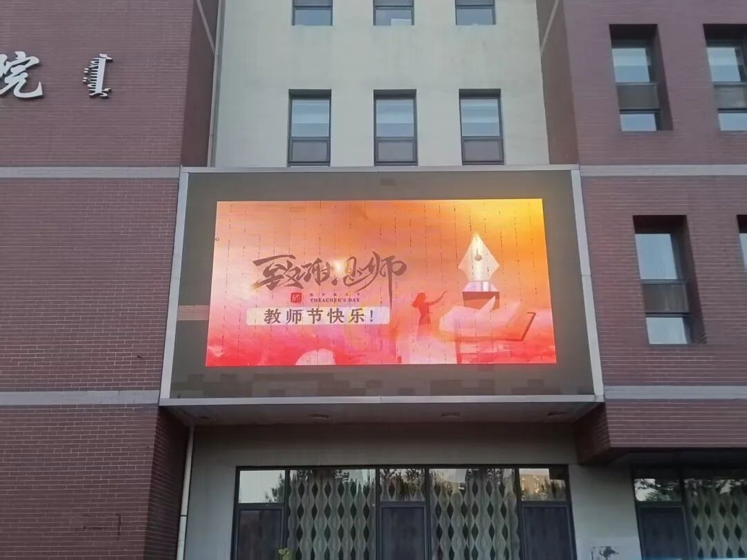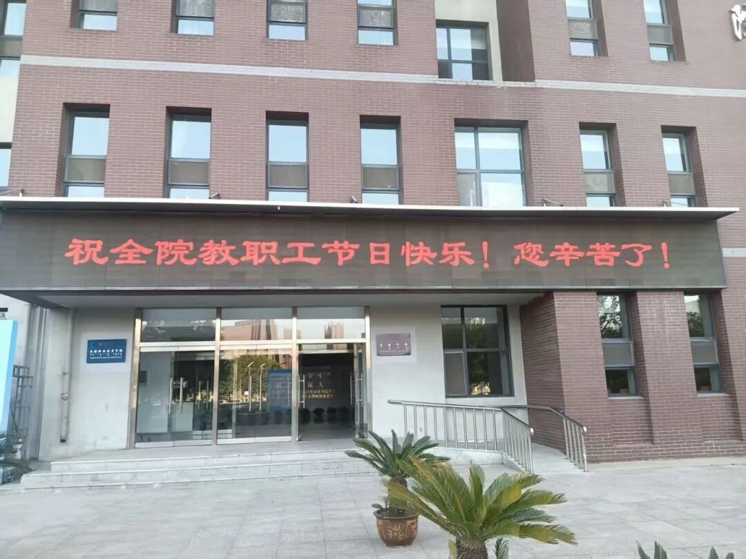 從9日晚開始,交通樓內(nèi)外五處LED顯示屏同時(shí)點(diǎn)亮,“老師,您好!”“老師,您辛苦啦!”“致敬恩師-教師節(jié)快樂”“祝全院教職工節(jié)日快樂!”等飽含深情的祝福語循環(huán)播放,營(yíng)造出濃厚的尊師重教氛圍。